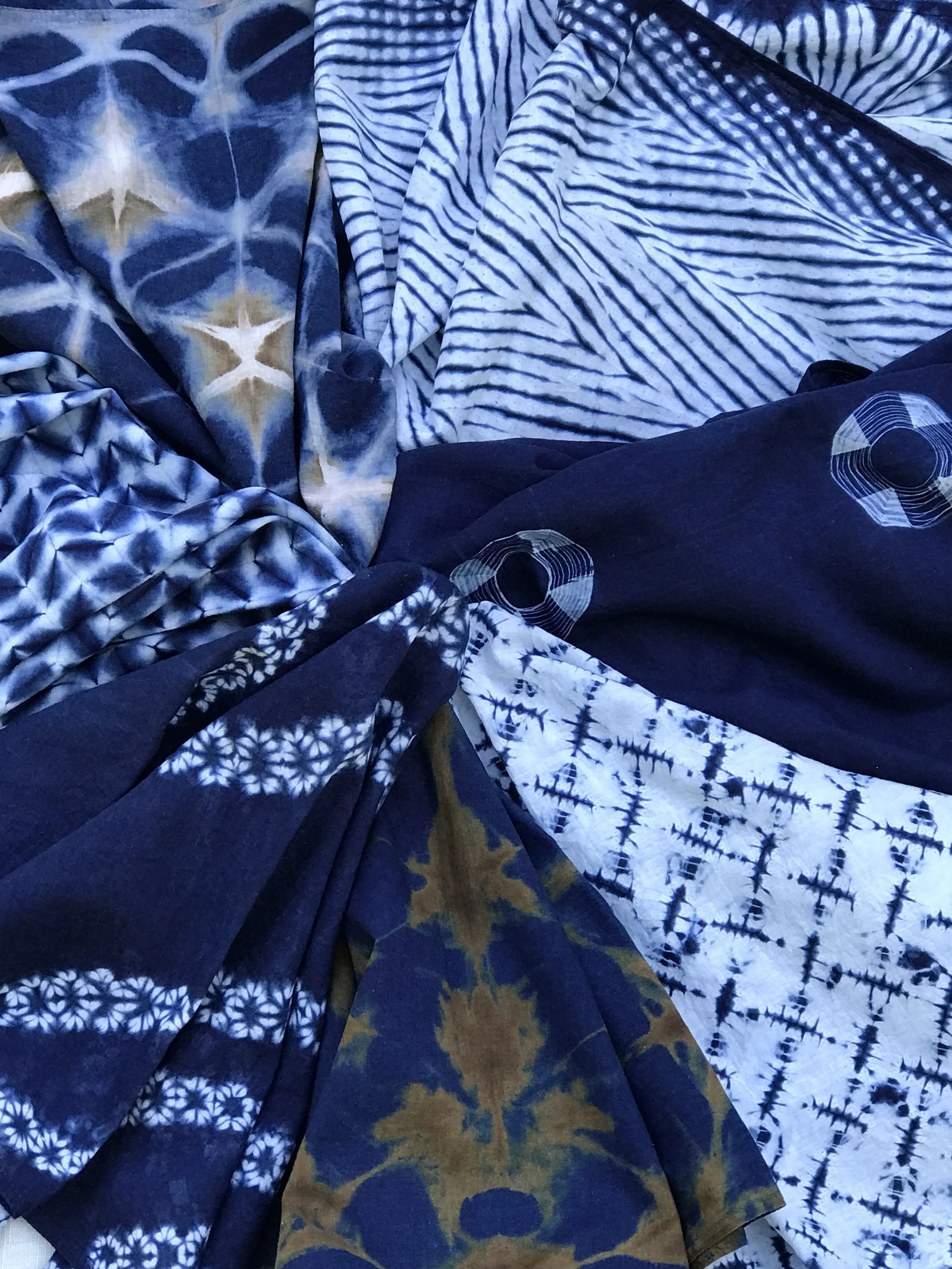 Artist Bio/Description: A fascination with patterns and nature has led me on an exploration of shape resist (shibori) and indigo dyeing. The nature part comes in with growing and processing indigo and other dye plants in the extensive garden that I cultivate. Indigo dyed scarves and bandanas will be for sale. I can demonstrate some of the folding /clamping techniques and plan to have an indigo vat set up outside to experiment with.