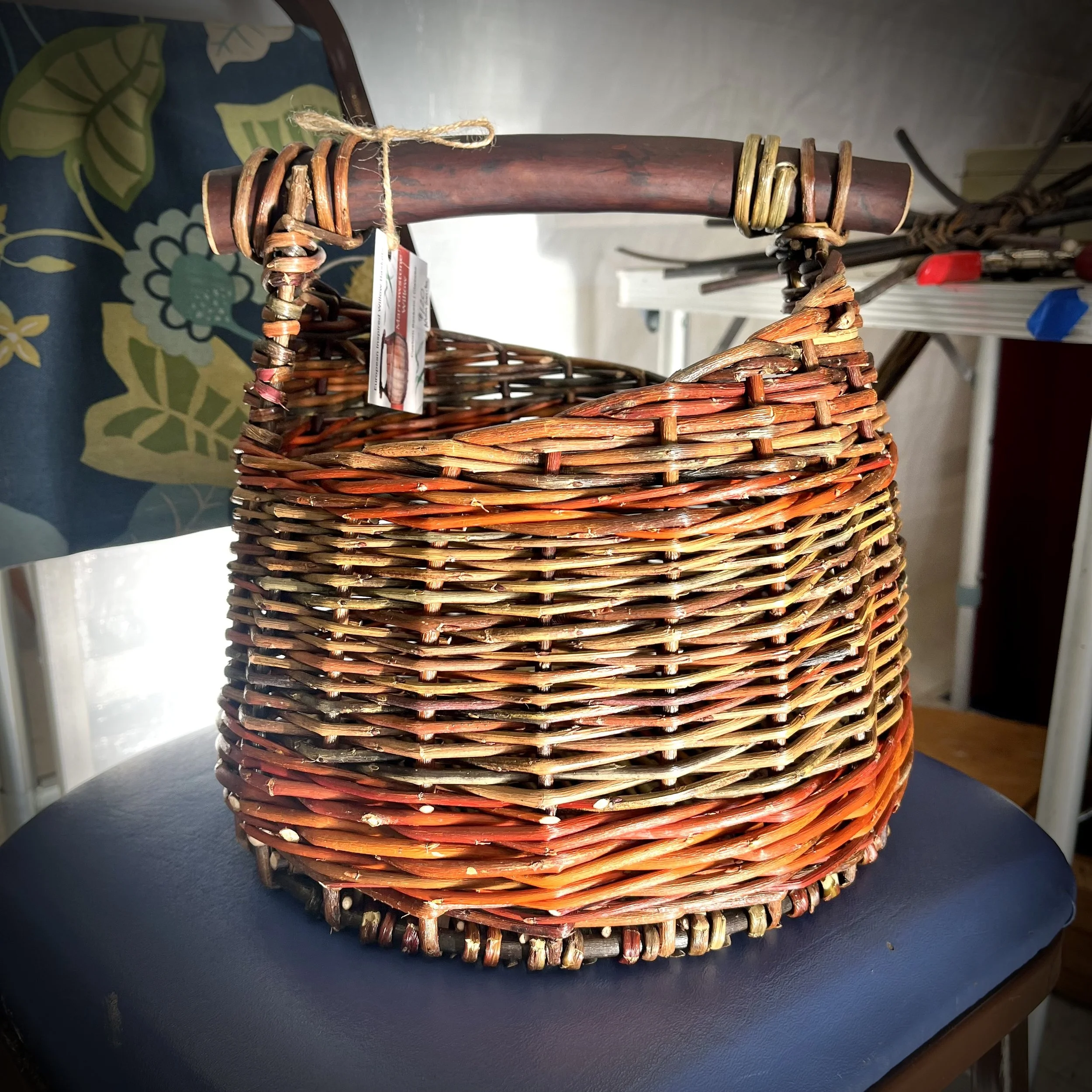 Each basket is woven with traditional techniques from Europe, with a mix of natural colors from 15 varieties of willow.