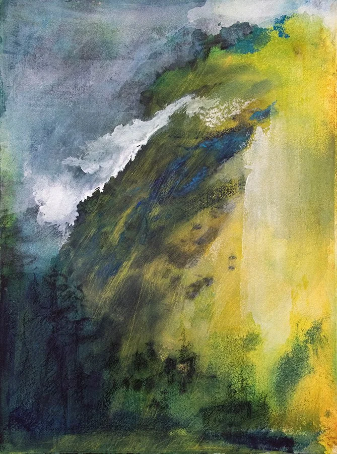 What I discovered in Japan was an affinity between Nihonga and practices I adopted in pastel- layering with pigments, capturing light and the movement/ expressiveness of brush work. I love working with water and traditional Japanese materials- washi paper, pigments, gofun (bleached ground oyster shell) - all applied with hake/fude brushes. I am taking classes in calligraphy and sumi-e to refine how I hold the brush, expand my repertoire of mark-making and hone my capability to paint simply, expressively and abstractly.